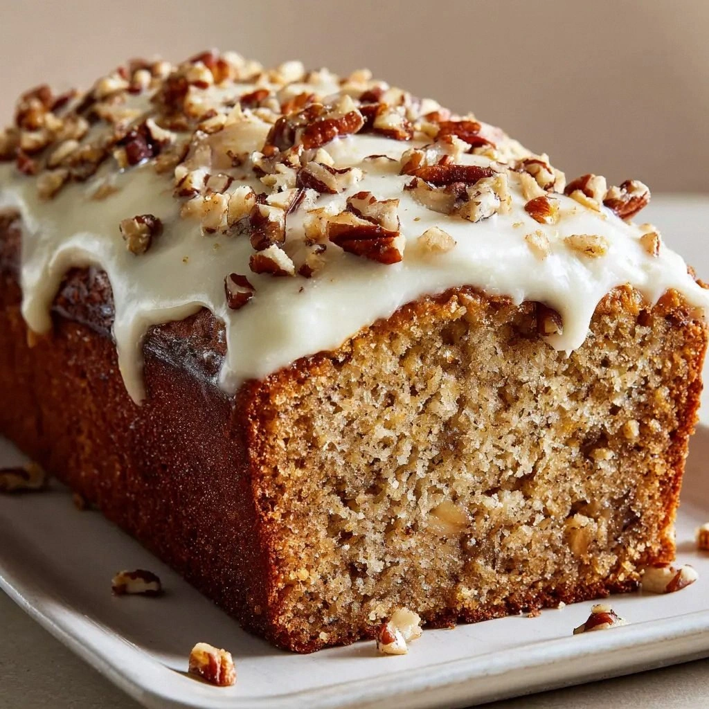 Picture yourself pulling this out of the oven, the whole kitchen smelling incredible, the golden crust crackling like a tiny sunrise. The first bite melts on your tongue—rich, buttery, with a crunch that shatters like thin ice. The pecans are toasted to perfection, their nutty aroma mingling with a subtle vanilla undertone that feels like a warm hug. The crumb is moist yet sturdy enough to hold the generous layer of cream cheese icing that coats the loaf like velvet.