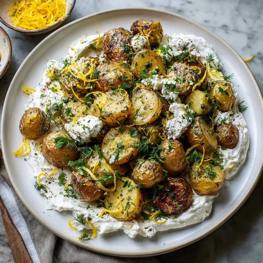 Picture the scene: the oven’s heat turning the humble potato into a golden, caramelized canvas. The scent of olive oil and garlic swirls through the air, mingling with the sharp, tangy perfume of feta that’s been whisked into a silky, airy sauce. The sound of the sizzling potatoes is music to any home cook’s ears, a crackle that promises crisp edges and tender hearts. The texture is a paradoxical dance between crunchy skin and cloud‑like interior, all coated in a glossy, herb‑infused glaze that practically sings when you bite. The flavor profile is a Mediterranean dream—salty, citrusy, herbaceous, with a creamy undertone that lingers on the palate.